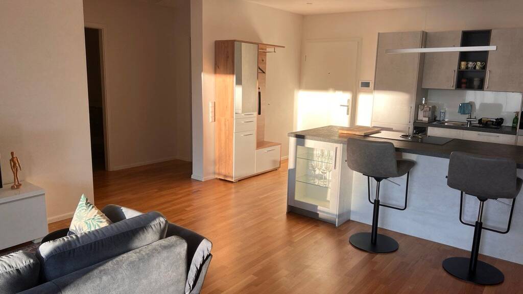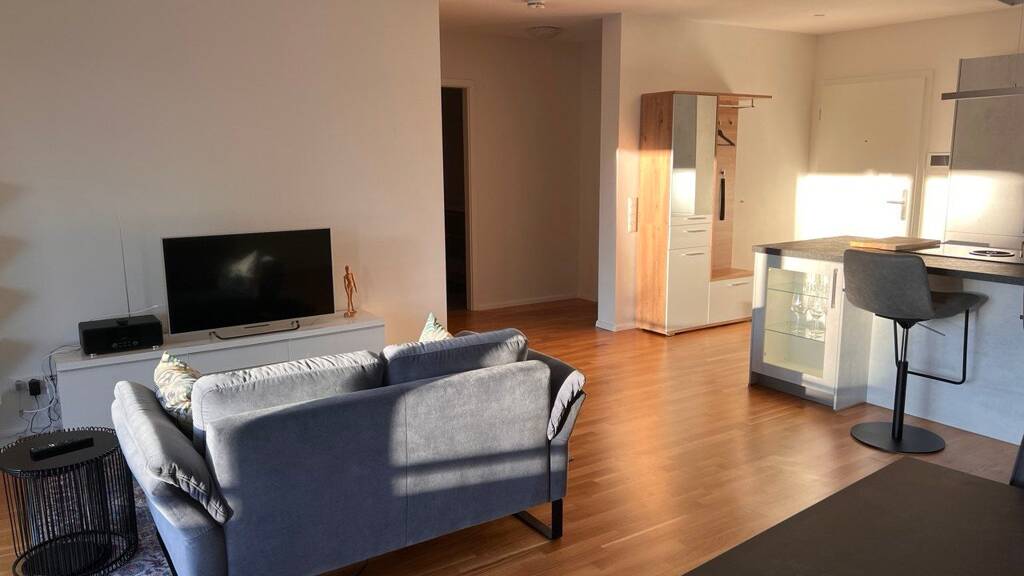 Beschreibung: NUR ZUR VORüBERGEHENDEN NUTZUNG! (1-6 Monatsverträge) Diese hochwertige, voll möblierte 2,5 - Zimmerwohnung (ca.94 m2, Bj.2019) überzeugt durch einen modernen Grundriss, helle Räume und einen grossen Balkon. Die Wohnung ist vollständig ausgestattet und ideal für temporäre berufliche Aufenthalte. Ein begehbarer Kleiderschrank, ein kleiner Küchenabstellraum sowie ein grösserer Abstellraum (kein Keller) gehören zum Mietumfang. Ein Tiefgaragenstellplatz kann (bei Bedarf) dazu gemietet werden. Wohnung Kaltmiete: 1190.- EUR Möblierung (inklusive Einbauküche): 120.- EUR Nebenkosten (Heizung/Wasser/Strom); 250.- EUR Tiefgaragenstellplatz (bei Bedarf): 90.- EUR Gesamtmiete: 1650.- EUR / Monat Lage: Bad Säckingen bietet eine gute Infrastruktur mit Einkaufsmöglichkeiten, Ärzten und Restaurants in unmittelbarer Nähe. Die Anbindung an den öffentlichen Nahverkehr ist gut, und die malerische Altstadt sowie die Rheinpromenade laden zu Freizeitaktivitäten ein. Die Nähe zur Schweiz und zu Frankreich eröffnet zusätzliche Möglichkeiten für Ausflüge. und Pendler. Ausstattung: Fussbodenheizung, Eichenparkett, elektrische Jalousien, elektrisches Sonnensegel (Balkon), Balkonmöbel, Schreibtisch, Fernseher, Miele Küchengeräte, Geschirrspüler, Induktionsherd mit Bora-Dampfabsaugung u.v.m.