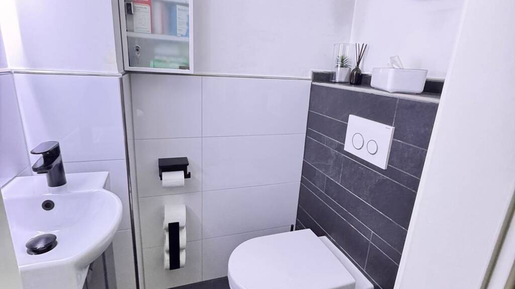 Das hochwertige Bad und Gäste-WC sind mit Hansgrohe Waschtischarmaturen, WC's und Brillen von Villeroy & Boch, die moderne begehbare Dusche mit Grohe Duscharmatur, die Badewanne und Badarmatur von Villeroy & Boch ausgestattet. Auch hier stehen Ihnen die Badmöbel zur Nutzung zur Verfügung.