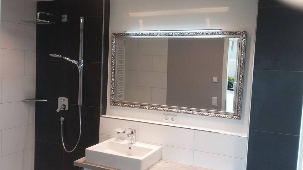 - einen übergroßen, beleuchteten Badspiegel