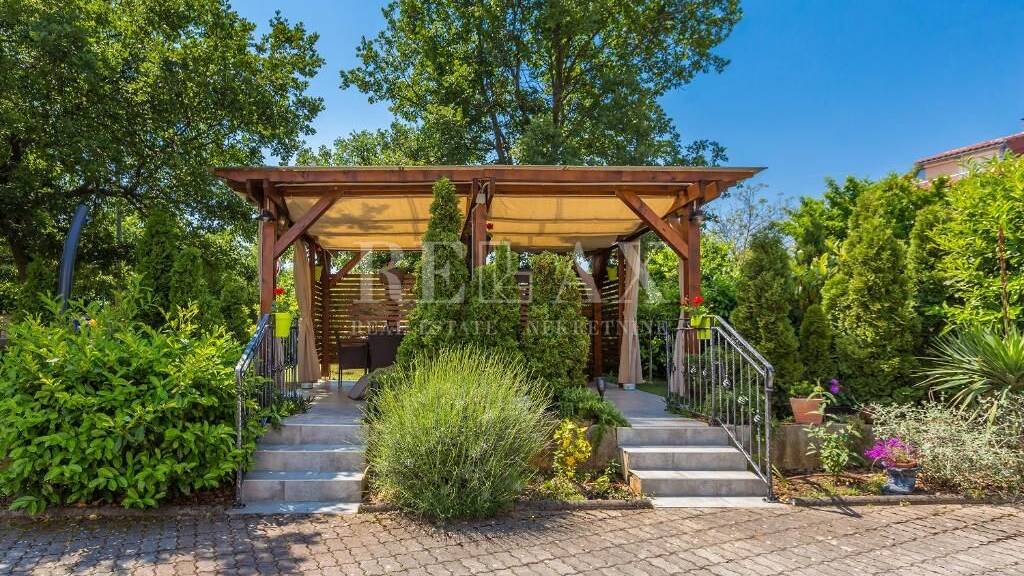 Besonders wertvoll macht diese Immobilie die großzügige Terrasse mit 80 m² sowie der dazugehörige Garten mit gepflegtem Grün, einem Grill und einem Holzpavillon, der einen angenehmen Ort zur Entspannung im Freien bietet. Die Wohnung ist nach Norden ausgerichtet und bietet einen Blick auf die Umgebung, was für Privatsphäre und Abstand vom sommerlichen Trubel sorgt.