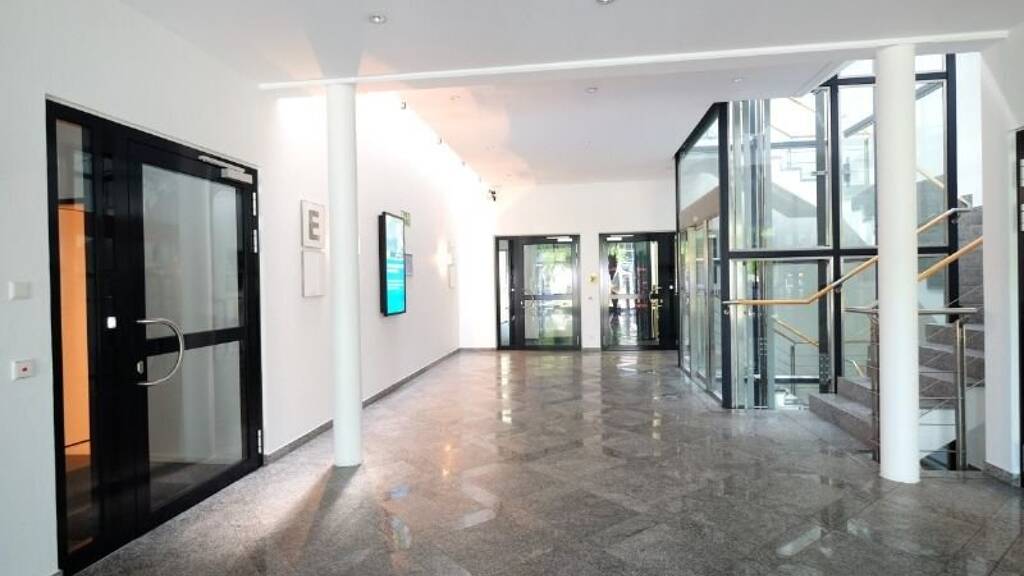 Das attraktive Bürogebäude zeichnet sich vor allem durch seinen großen Glasanteil aus und verfügt über repräsentative Foyers, modern ausgestattete Mietflächen und begrünte Außenbereiche. Das Büro im 2. Obergeschoss bietet einen bunten Mix aus Einzel-, Team- und Großraumbüros, der Ausbau kann jedoch den Wünschen des künftigen Mieters angepasst werden.