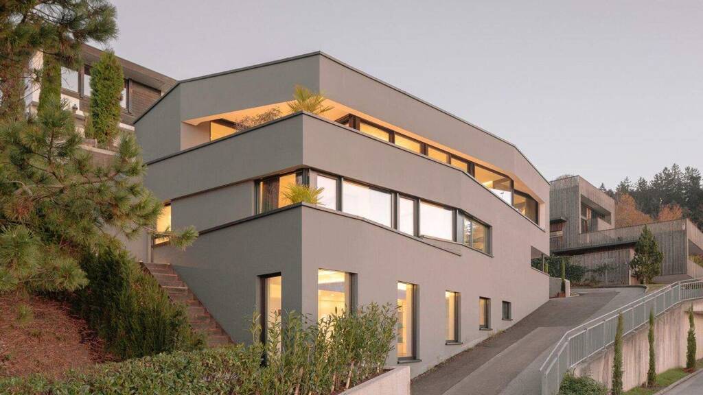Diese Anpassungsfähigkeit eröffnet vielfältige Optionen für individuelles Wohnen. Die Außenbereiche und die Fassade werden durch Cortenstahl-Elemente geprägt, die mit ihrem markanten Look ein modernes Designakzent setzen. Eine Bewässerungsanlage für die Außenflächen sorgt auf Knopfdruck für die optimale Pflege. Das ausgeklügelte Hangbefestigungskonzept in Form einer Betonwanne sowie Bohrankern garantiert unbekümmertes Wohnen mit maximaler Stabilität am Pfänderhang. Dieses Anwesen ist eine Hommage an das exklusive Wohnen und verbindet modernen Luxus mit der unvergleichlichen Schönheit der Natur am Bodensee.