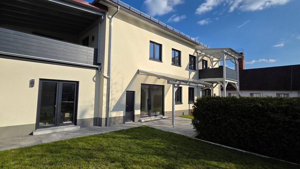 Zum Verkauf stehen 2 Wohnungen in einem neuerrichteten bzw saniertem Mehrfamilienwohnhauses im Herzen von Meiningen. Die Wohnungen sind in einem offenem modernen Stil errichtet. Eine befindet sich im EG mit eigenem Garten ,die andere im OG mit großem 16m² Balkon. Zu beiden Wohnungen gehört jeweils ein Stellplatz auf den Gelände. Ausstattungsmerkmale: -Mehrfamilienwohnhaus in massiver Bauweise -Erstbezug -Wohn/Esszimmer, Schlafzimmer, Kinderzimmer, Küche, Bad, Gäste WC, HWR, Keller -Fußbodenheizung mit Wärmepumpe -Kunststofffenster 3fachvergl mit elektr.Rollo -umfangreiche Elektroinstallation -Zimmertüren in Holzoptik mit Magnetschließer -Wände & Decken mit Malervlies tapez und gestri. -Fußboden im Wohnbereich aus Vinyl -Boden & Wände Bad mit Großformat Fliesen -Große walkin Dusche mit Glasabtrennung -Keller -Fahrradraum mit direktem Zugang zur Straße