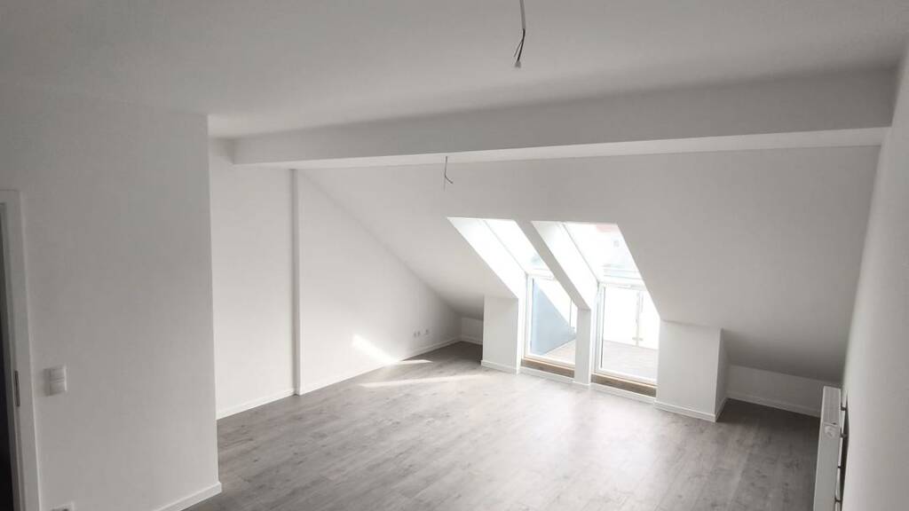 Diese attraktive Neubau - Dachgeschosswohnung mit zwei Zimmern (Wohnzimmer und Schlafzimmer) befindet sich im Dachgeschoss und ist ab sofort erstmals bezugsbereit. Auf einer Wohnfläche von etwa 47m² bietet sie einen gut durchdachten Grundriss, der die einzelnen Wohnbereiche klar voneinander trennt.