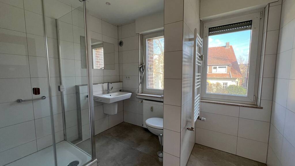Diese Wohnung befindet sich im 1. Stock in einem voll verklinkerten und gut wärmegedämmten 3-Familienhaus . Das 1965 erbaute Haus wurde ständig saniert und modernisiert, so wurden hochwertige Fenster eingebaut, das Dach wärmegedämmt und erneuert und vor drei Jahren eine neue Gasheizung installiert. Diele, Küche und Bad sind mit Bodenfliesen ausgestattet, Wohn- und Esszimmer und beide Schlafzimmer haben hochwertigen Holzparkett-Fussboden, der neu geschliffen und geölt wurde. Von der Diele aus betritt man den geräumigen Balkon. Wohn-und Esszimmer sind großzügig über Eck ohne Trennwand verbunden. Das Badezimmer ist grundrenoviert, neue Fliesen verlegt, Dusche, Waschbecken und Toilette erneuert, ein Handtuchtrockner gehört zur Neuausstattung. In allen Räumen wurden aktuell Malerarbeiten durchgeführt, alle Wände neu tapeziert und weiß gestrichen, die Decken gestrichen, und auch Türen und Türfüllungen lasiert, so dass einem sofortigen Einzug nichts im Wege steht. Zur Wohnung gehören außerdem ein Kellerraum und ein Waschkeller, der Platz für eine Waschmaschine und einen Trockner bietet. Im Haus ist die Voraussetzung für einen Glasfaseranschluss der Wohnung gegeben. Zum Haus gehört ein durch Hecken abgeschlossener Garten mit einer Rasenfläche und einem neuen Gerätehaus, in dem außer dem Rasenmäher auch Fahrräder abgestellt werden können. Die Pflege des Gartens (hauptsächlich das Mähen des Rasens) wird in Absprache der Mieter organisiert. Das Objekt befindet sich in Borgholzhausen. In unmittelbarer Umgebung der Immobilie fahren einige Buslinien in Richtung Bielefeld und in Richtung Bahnhof.. In Laufnähe gibt es Supermärkte, eine Bäckerei, zwei Cafés, eine Arztpraxis und ein Restaurant. Die Stadtmitte und auch die Schulen sind in 5 Minuten Fussweg erreichbar.