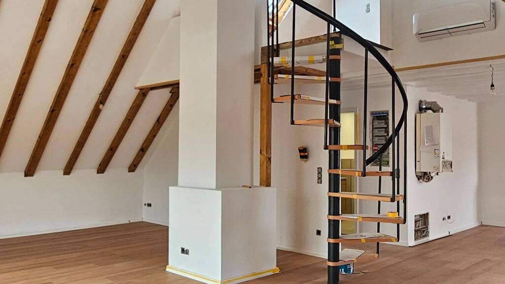 Diese außergewöhnliche 2,5-Zimmer-Maisonette-Wohnung befindet sich im Dachgeschoss eines gepflegten Dreifamilienhauses in Durlach-Aue. Nach einer umfassenden Kernsanierung erwartet Sie hier ein Erstbezug auf ca. 110 m² Wohnfläche, die durch ein offenes und modernes Raumkonzept bestechen. Das Herzstück der Wohnung ist der beeindruckende, ca. 64 m² große Wohn- und Essbereich. Mit Deckenhöhen von teilweise über 4 Metern unter dem Giebel bietet dieser Raum ein unvergleichliches Freiheitsgefühl. Wichtiger Hinweis zu den Fotos: Die beigefügten Bilder zeigen teilweise noch den aktuellen Bauzustand der finalen Sanierungsphase. Die Wohnung wird pünktlich und bezugsfertig übergeben. Bezugsfertig ab: Mitte April 2026. Modernes Bad: Komplett neu gestaltet inklusive komfortabler Fußbodenheizung. Neue Einbauküche: Hochwertige Ausstattung, ebenfalls mit Fußbodenheizung. Bodenbeläge: In der gesamten Wohnung wurde ein einheitlicher, hochwertiger Boden verlegt. Galerie: Ein offener Bereich, der sich ideal als Home-Office eignet. Klimatisierung: Für kühle Köpfe sorgen drei fest installierte Klimaanlagen. Heizung: Eigene Gas-Etagentherme (die optische Verkleidung wird noch in Absprache mit dem Mieter finalisiert). Ruhige und exzellente Wohnlage in Karlsruhe Durlach-Aue. Perfekte Anbindung an die Autobahn und den ÖPNV.