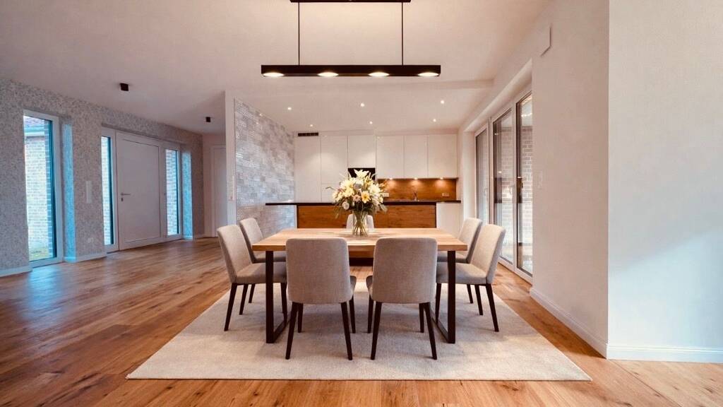 Ein Zuhause, das mehr ist als nur vier Wände... Willkommen in Ihrem neuen Zuhause – einem modernen, hochwertig gebauten Einfamilienhaus aus 2024, das stilvolles Wohnen, durchdachte Raumaufteilung und energieeffiziente Technik perfekt miteinander verbindet. Bereits beim Betreten spüren Sie die besondere Atmosphäre: Großzügige, lichtdurchflutete Räume, hochwertige Materialien und ein offenes Wohnkonzept schaffen ein Wohngefühl, das sowohl Geborgenheit als auch Freiheit vermittelt. Der offene Wohn- und Essbereich bildet das Herzstück des Hauses – ideal für gemeinsame Zeit mit der Familie, entspannte Abende oder gesellige Treffen mit Freunden. Große Fensterflächen sorgen für eine angenehme Helligkeit und verbinden Innen- und Außenbereich auf harmonische Weise. Perfekt für verschiedene Lebenssituationen Dieses Haus passt sich Ihrem Leben an: Für Familien: Großzügige Zimmer, mehrere Bäder und viel Platz für individuelle Rückzugsorte Für Homeoffice & Selbstständige: Flexible Raumgestaltung für Arbeiten von Zuhause – ruhig, hell und inspirierend Für Paare: Moderne Architektur, viel Komfort und Raum zur Entfaltung Für Ruhesuchende / Best Ager: Übersichtliche Struktur, barrierearm, hochwertige Ausstattung und zukunftssichere Bauweise Energieeffizient & zukunftssicher Dank moderner Wärmepumpe und effizienter Bauweise profitieren Sie von niedrigen Energiekosten und einem nachhaltigen Wohnkonzept – ein klarer Vorteil in der heutigen Zeit. Besonderheiten auf einen Blick Neubau 2024 – Erstbezug smarthomefähig ca. 194 m² Wohnfläche 6 Zimmer z.T. mit Ankleide 3 moderne Bäder z.T. en Suite Einbauküche mit Markengeräten von Miele und Siemens moderne, hochwertige Badmöbel mit Beleuchtung durch Bewegungsmelder hochwertige Materialien: Parkett, Fliesen sowie Tapeten in modernem Design alle Räume im Erdgeschoss haben einen direkten Zugang zum Garten Wärmepumpe mit automatischer Be- und Entlüftung inkl. Wärmerückgewinnung elektrische AluminiumJalousien WallBox (Tesla) Fußbodenheizung im ganzen Haus, sowie GARAGE voll überdachte Terrasse mit Vorbereitung für Heizstrahler für maximalen Outdoor-Komfort großzügige Fensterflächen moderner Grundriss ruhige und attraktive Lage Dieses Haus bietet Ihnen die Möglichkeit, ohne Bauphase direkt in ein modernes Zuhause einzuziehen. Außenbereich – Ihr persönlicher Gestaltungsspielraum Das Grundstück wurde bereits hochwertig vorbereitet, somit können Sie Garten, Bepflanzung und Pflasterflächen ganz nach Ihren eigenen Vorstellungen gestalten und Ihrem neuen Zuhause eine persönliche Note verleihen. Schulen & Kitas Kindergarten- und Grundschule sowie weiterführende Schulen in Hanstedt, Jesteburg, Buchholz, Salzhausen, Winsen (Luhe) Einkaufsmöglichkeiten, Ärzte & alles für den täglichen Bedarf sind schnell erreichbar, sowie Krankenhäuser in Buchholz und Winsen (Luhe) Lebensqualität inklusive die Nähe zur Lüneburger Heide macht diese Immobilie besonders attraktiv- mit Natur, Ruhe und hoher Lebensqualität direkt vor der Tür Hinweis zu den Bildern Einige dargestellte Einrichtungsbeispiele wurden digital visualisiert, um Ihnen eine bessere Vorstellung der Nutzungsmöglichkeiten zu geben. Ein Haus, das modernes Wohnen, Energieeffizienz und Lebensqualität vereint – ideal für alle, die Wert auf Qualität, Raum, Zukunftssicherheit und die Nähe zu Hamburg legen. Nutzen Sie die Gelegenheit, dieses einladende Zuhause zu besichtigen! Vereinbaren Sie noch heute einen Termin und entdecken Sie, wie dieses Haus perfekt zu Ihrem Familienleben passt!