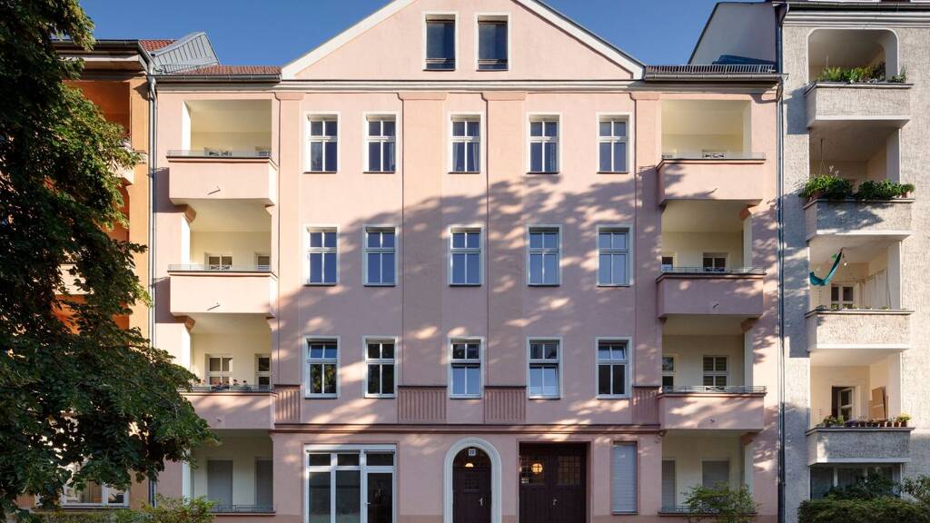 Südöstlich des Florakiezes im Kissingenviertel, zwischen Berliner Straße und Neumannstraße, befindet sich der charmante Altbau in der Binzstraße 20 in einer ruhigen, von Bäumen gesäumten Wohnstraße. Das gepflegte Mehrfamilienhaus wurde um 1910 erbaut und besteht aus einem Vorder- und einem Gartenhaus sowie einem gemeinsamen Innenhof.