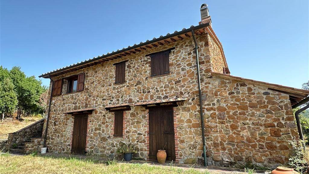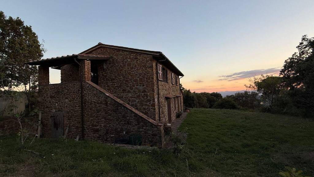 Rustikales massives großes Bauernhaus hier mit Rustico bezeichnet mit typischen Deckenkonstruktionen aus stabilem Kastanienholz. Auf zwei Etagen befinden 5 Schlafzimmer, eine offene Küche mit Kamin und Ofen Stufa. Die Bäder sind mit Duschen und WC, Bidet und Waschbecken standardgemäß ausgestattet. Mehrere Eingänge führen in das schöne Haus, davon auch ein Portico überdacht im Sinne einer Terrasse mit einigen Stufen. Vom Erdgeschoss aus kommt man auch in den unterkellerten Bereich des Hauses, wo viel Platz zum Abstellen für Olivenöl, Wein, oder andere schöne Sachen vorhanden ist. Der Ausblick ins Grüne und auf die Insel Elba verzaubern das Grundstück mit Alleinlage enorm.