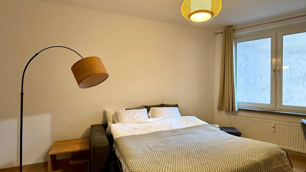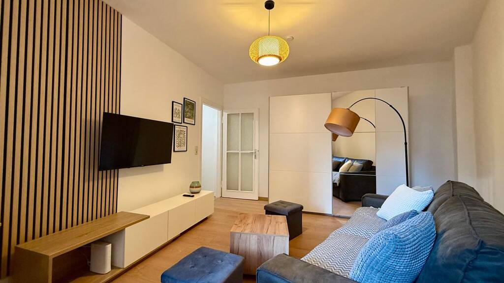 Die Wohnung verfügt über ein gemütliches Zimmer, das mit einem ausklappbaren Schlafsofa mit Matratze, einem TV sowie einem höhenverstellbaren Schreibtisch und einem Bürostuhl ausgestattet ist. Schnelles Internet, das sich auch gut zum Arbeiten eignet, ist ebenfalls vorhanden. Die voll ausgestattete Küche verfügt über eine Waschmaschine, eine Geschirrspülmaschine, einen Kühlschrank, eine Kaffeemaschine sowie einen Essbereich. Das Badezimmer ist mit einer Badewanne ausgestattet. Die Wohnung verfügt über einen großen Balkon, der zusätzlichen Platz zum Entspannen bietet, sowie über eine Loggia, die als Abstellraum dient. Die Wohnung ist vollständig ausgestattet und verfügt über alle wichtigen Annehmlichkeiten für ein komfortables und bequemes Wohnen.