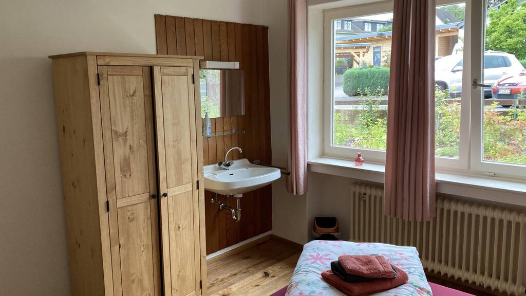 Die ehemalige Pension wurde zum Seminar-, Wohn- und Gästehaus umgebaut und nach baubiologischen Kriterien komplett saniert. Verwendet wurden Holzfaserdämmstoffe, Lehm, Vollholz, Lehm- und Kalkfarben. Die Einbauküchen im Dach- und Erdgeschoß sind aus Vollholz erstellt. Neue Heizung mit Solarunterstützung, teilweise neue Fenster, Dachdämmung und Wanddämmung (im DG) zusammen mit den Sockelleistenheizungen reduzieren den Heizwärmebedarf. Der große Garten, gegen Süd Ost lädt zum Verweilen ein mit Pavillon, Sitzplatz mit Feuerstelle. Ein Spielplatz ist ebenfalls vorhanden. Parkplätze sind vor dem Gebäude sowie im Gartenbereich ausreichend vorhanden. Im Haus sind 6 abgeschlossene Wohnungen, vier Einzelzimmer, davon ein Zimmer mit Bad, die anderen mit Waschtisch und Bad auf dem Flur. Weiter ist ein großer Seminarraum sowie eine große Seminar- bzw. Gewerbeküche vorhanden.