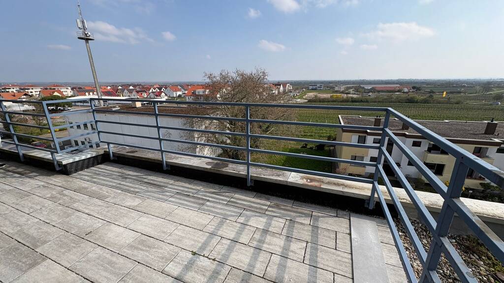 Ein Zuhause mit Weitblick: Diese außergewöhnliche 3-Zimmer-Penthousewohnung in Bad Dürkheim vereint modernes Wohnen mit einem einzigartigen Ausblick über die Dächer der Stadt bis in die umliegenden Weinberge. Auf ca. 91 m² Wohnfläche (inkl. anteiliger Anrechnung der Dachterrasse) im 4. Obergeschoss erwartet Sie ein lichtdurchflutetes Wohnambiente mit hochwertiger Ausstattung und einer Atmosphäre, die man sonst eher aus dem Urlaub kennt. Das Herzstück der Wohnung ist der großzügige Wohn- und Essbereich mit beeindruckender Fensterfront. Hier verschmelzen Innen- und Außenbereich auf besondere Weise – mit direktem Zugang zur weitläufigen Dachterrasse, die zu jeder Tageszeit zum Verweilen einlädt. Ob beim Frühstück in der Morgensonne oder beim entspannten Ausklang des Tages mit Blick ins Grüne – dieser Ort schafft besondere Lebensqualität. Ausstattung & Raumaufteilung: - Großzügiger Wohn- und Essbereich mit bodentiefen Fenstern und direktem Zugang zur Dachterrasse - Weitläufige Dachterrasse mit freiem Blick in die Weinberge - Schlafzimmer mit En-suite-Badezimmer (Badewanne) - Weiteres Zimmer – ideal als Kinder-, Gäste- oder Arbeitszimmer - Separates Gäste-WC mit Dusche - Eine neue, moderne Einbauküche mit hochwertigen Markengeräten von Bosch und Siemens ist bereits vorhanden und wird mitvermietet (siehe Nebenkosten) - Erstbezug nach umfassender Kernsanierung - Aufzug bis zur Wohnung - Kellerraum für zusätzlichen Stauraum - Garage mit Stellplatz gehören zur Wohnung Nebenkosten: - 300 € Nebenkosten inkl. Heizung - 150 € Einbauküche - 50 € Garage und Stellplatz Hinweis: Die Heizkosten basieren auf einer Schätzung, da die Wohnung vor der Kernsanierung nicht genutzt wurde. Im Zuge der Renovierung wurde die Wohnung energetisch verbessert (neue Fenster und Heizkörper). Der tatsächliche Verbrauch hängt vom individuellen Nutzungsverhalten ab. Überzeugen Sie sich selbst von diesem besonderen Wohngefühl – wir freuen uns auf Ihre aussagekräftige Anfrage.