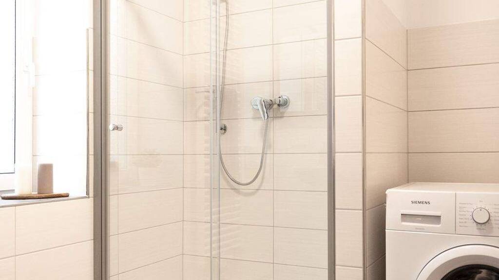 - Badezimmer: Bad mit Dusche, Bad mit Fenster