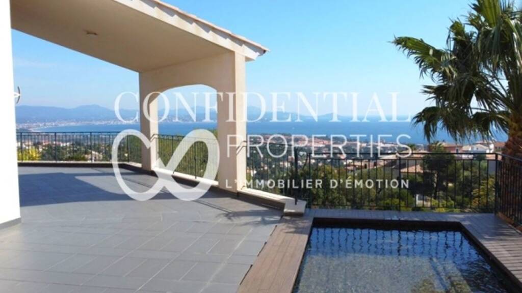 Mit herrlichem Meerblick beeindruckt diese hervorragende Villa mit 197 m² durch ihre großzügigen Proportionen und moderne Eleganz. Die Immobilie liegt in den Hügeln oberhalb von Saint-Aygulf, in einer ruhigen und begehrenswerten Umgebung, und genießt eine ideale Lage, nur 2 km von Geschäften und Stränden entfernt. Die Villa ist um eine riesige Wohnfläche von 74 m² ausgerichtet, bestehend aus einem hellen Wohnzimmer mit zentralem Kamin und einer hochwertigen Gaggenau-Küche mit offenem Grundriss, die alle auf eine wunderschöne überdachte Terrasse hinausgerichtet sind - perfekt, um Zeit mit Freunden und Familie mit Blick auf das Meer zu verbringen. Ein großes Zwischengeschoss mit Balkon blickt auf das Wohnzimmer und verleiht dem Raum und Licht zusätzlich das Gefühl von Raum und Licht. Der Schlafbereich besteht aus einer Master-Suite mit Umkleideraum und Badezimmer, einem Schlafzimmer mit eigenem Duschbad und einem dritten Schlafzimmer mit eigener Dusche. Der aktuelle Grundriss bietet außerdem die Möglichkeit, zwei zusätzliche Schlafzimmer zu schaffen. Außen verfügt das Gelände über ein Bahnbecken mit abnehmbarem Boden, das nahtlos in den 1.549 m² großen, gestalteten Garten integriert ist. Die Villa ist mit einem Hausautomationssystem ausgestattet, das Komfort und modernen Komfort gewährleistet, und verfügt über eine außergewöhnliche 155 m² große Garage - ein seltener Fund in dieser Gegend. Eine außergewöhnliche Immobilie, die eine begehrte Lage, hochwertige Annehmlichkeiten und den mediterranen Lebensstil vereint. Der Preis beinhaltet Vermittlungsgebühren, die vom Käufer zu zahlen sind. Bitte kontaktieren: Jeanine Melchior Tel: +33 (0)6 61 13 84 12 E-Mail: