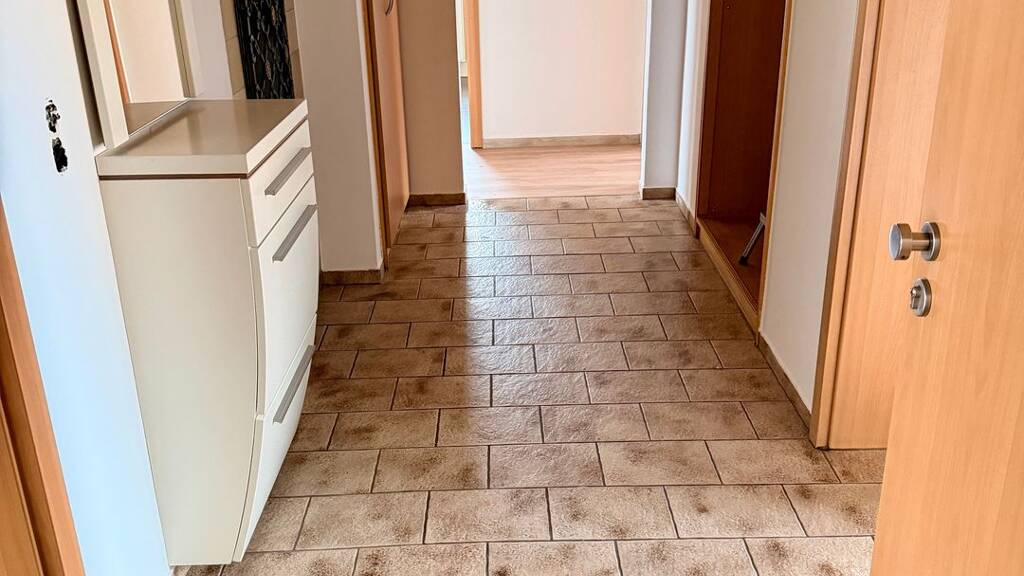 Die Räume wurden frisch tapeziert und gestrichen. In den Schlafräumen sowie im hinteren Flur wurde neuer Vinylboden verlegt, ebenso erhielt die Küche einen neuen Bodenbelag.