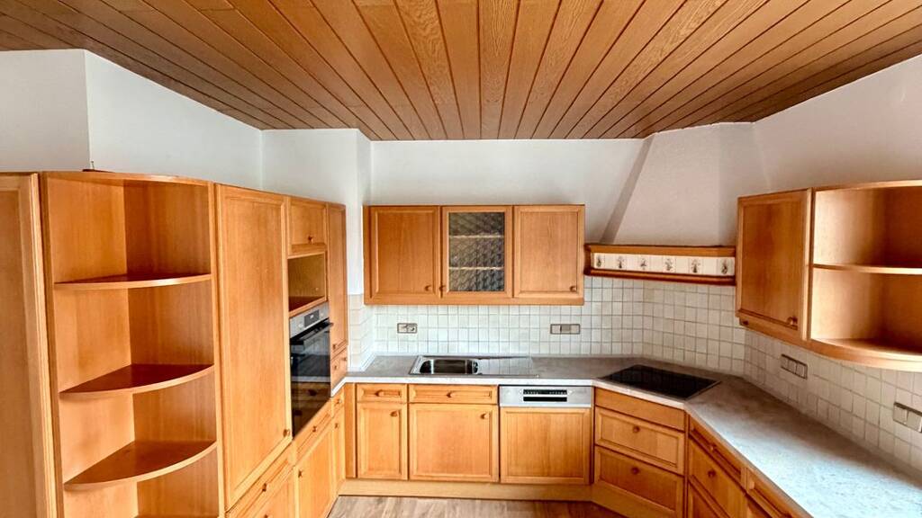 Die Wohnung verfügt zudem über eine rustikale Einbauküche, die vom Schreiner frisch aufgearbeitet wurde. Ceranfeld, Backofen und Spülmaschine sind neu und bieten zeitgemäßen Komfort.
