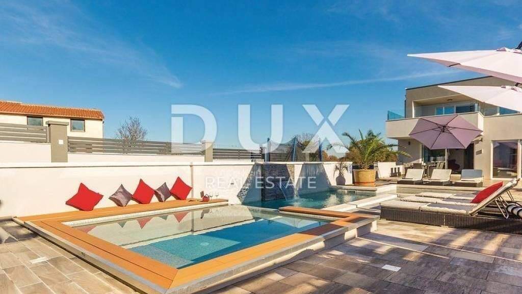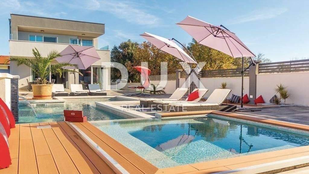Wir verkaufen eine reich ausgestattete moderne Villa in ruhiger Lage! Das Anwesen befindet sich auf einem großen Grundstück und hat eine Gesamtwohnfläche von 350 m2. Im Erdgeschoss, das vom Haupteingang oder von der Garage aus zugänglich ist, befinden sich eine Eingangshalle, ein Badezimmer und eine Speisekammer. Das meiste davon ist ein geräumiges Wohnzimmer, das mit der Küche und dem Esszimmer verbunden ist, sowie ein Ruhebereich. Eine Innentreppe führt zum Zwischengeschoss, in dem sich das Hauptschlafzimmer befindet, das mit einem eigenen Kleiderschrank und Bad ausgestattet ist und Zugang zu einer geräumigen Terrasse bietet. Im ersten Stock des Grundstücks befinden sich eine Eingangshalle, drei Schlafzimmer, zwei Badezimmer und eine große Terrasse mit Blick auf das Grün und die Umgebung. Im angelegten Garten befindet sich ein Nebengebäude mit einer Bar im Freien und einem Kamin. Im Inneren des Gebäudes befindet sich ein Spielzimmer mit Billardtisch, Tischfußball, Trainingsgeräten und Fernseher. Neben dem Nebengebäude gibt es einen 40 m2 großen Swimmingpool mit separatem Whirlpool, Sonnendeck, Kinderpark, Tischtennisplatte und einer mit Oliven und Obstbäumen angereicherten Grünfläche. Auf dem Dach des Hauptgebäudes befindet sich ein großer Raum, der in eine Dachterrasse umgewandelt werden kann, während sich im Keller ein großer offener Raum von 100 m2 befindet. Der Eigentümer besitzt beide Projekte, um die Dachterrasse und den Kellerraum in eine Entspannungszone zu bringen, die mit einem kleinen Kinosaal und einer Wellnesszone ausgestattet ist. Das Anwesen ist modern gestaltet und gebaut und komplett mit hochwertigen Materialien und modernen Details ausgestattet. Hervorzuheben ist die bewegliche Wand mit dem Fernseher im Wohnzimmer, der um 360 Grad gedreht werden kann.