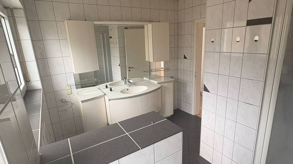 Das Badezimmer ist funktional gestaltet und bietet ausreichend Platz. Zusätzlich steht ein eigener Dachboden als Stauraum zur Verfügung.