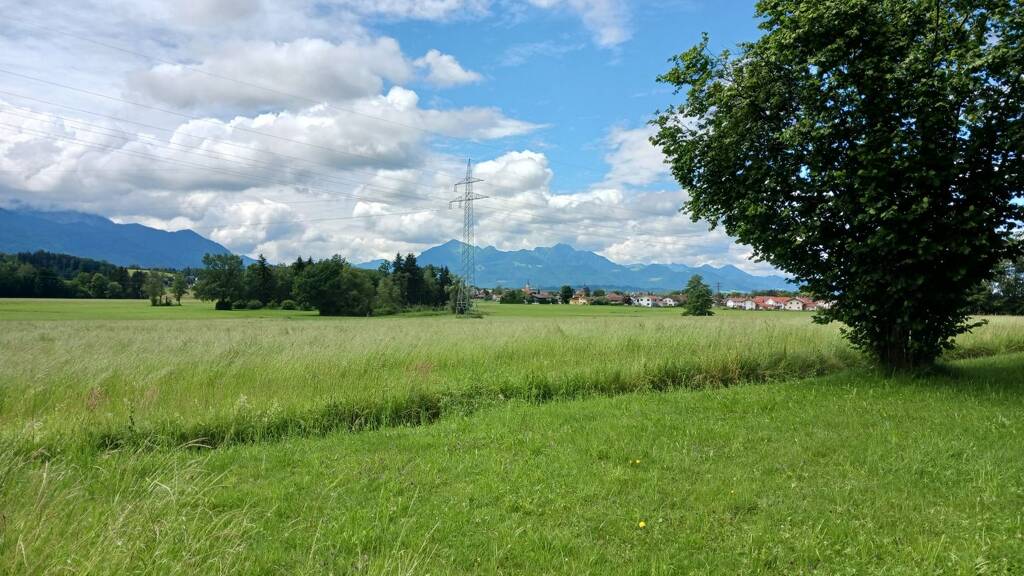 Am Ortsrand gelegenes Grundstück mit freiem Blick auf die Chiemgauer Berge. Ganztags sonnig, leichte Hanglage.