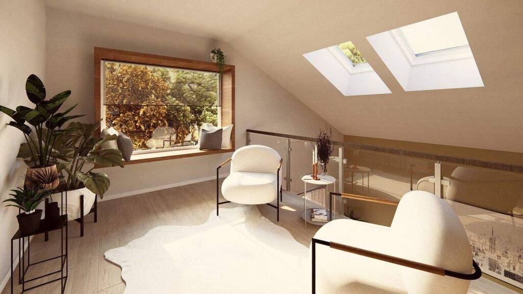 Unser Pult 28 besticht durch seine durchdachte Raumaufteilung und moderne Architektur, die ideal für Familien ist. Im Erdgeschoss erwartet Sie ein großzügiger und offener Wohn-Essbereich, der zum gemeinsamen Verweilen und Genießen einlädt. Hier können Sie mit Familie und Freunden gesellige Abende verbringen oder einfach den Alltag entspannt ausklingen lassen. Im Dachgeschoss befindet sich ein komfortables Elternschlafzimmer mit integriertem Badezimmer, welches höchsten Wohnkomfort und Privatsphäre bietet. Zwei geräumige Kinderzimmer bieten den jüngsten Familienmitgliedern genügend Platz zum Spielen und Lernen. Eine große Galerie lädt zum Entspannen und Träumen ein, sei es mit einem guten Buch oder einfach bei einem Blick in den Garten. Dieses Einfamilienhaus vereint Funktionalität und stilvolles Design und erfüllt alle Wünsche für modernes Wohnen.