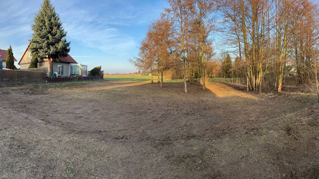 Das Grundstück liegt am Ende einer um 1990 erschlossenen Neubausiedlung – absolut ruhig, ohne Durchgangsverkehr. In südlicher und östlicher Richtung grenzen unbebaute Grün- und Ackerflächen an. Hier ist mit keiner weiteren Bebauung zu rechnen, sodass die freie Sicht ins Grüne dauerhaft erhalten bleibt.