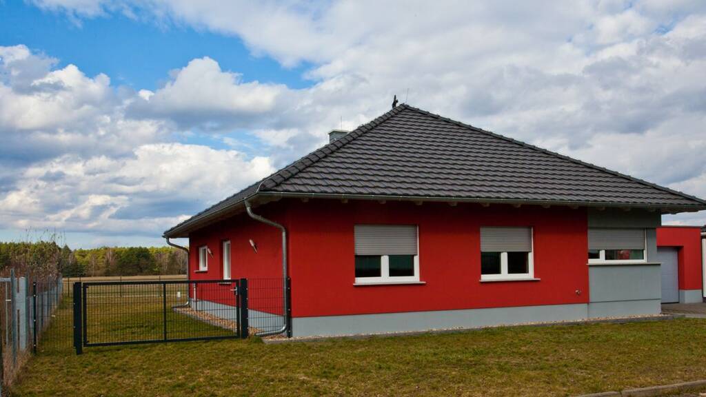 Im kleinen Spreewald-Ort Kuschkow steht dieser Bungalow im Toskana-Stil auf 860 m² Grundstücksfläche.