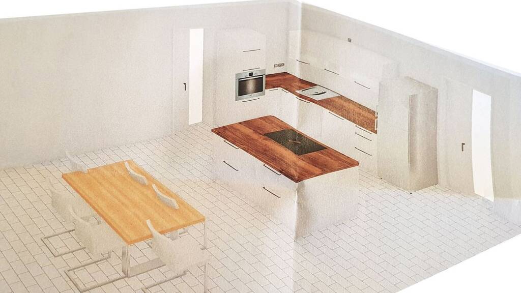 Die Küche und der Wohn- und Essbereich mit dem Kamin in der Mitte sind das Herzstück der Immobilie. Hier können Sie gemeinsame Zeit miteinander verbringen. Die riesigen Glaselemente der Fensterfassade sorgen für eine optimale Lichteinstrahlung und ein durchweg positives Wohngefühl. An die Küche (KOCHINSEL) schließt sich eine praktische Speisekammer zur Vorratshaltung an. Übrigens, im Wohnzimmer und im Essbereich sind bereits in Bodennähe die Steckdosen und Fernsehanschlüsse vorhanden. Hinter Putz sind aber auch bereits Leerrohre mit Kabel verlegt um den Fernseher auch an der Wand zu Montieren (ohne dass man dann die Kabel sieht).