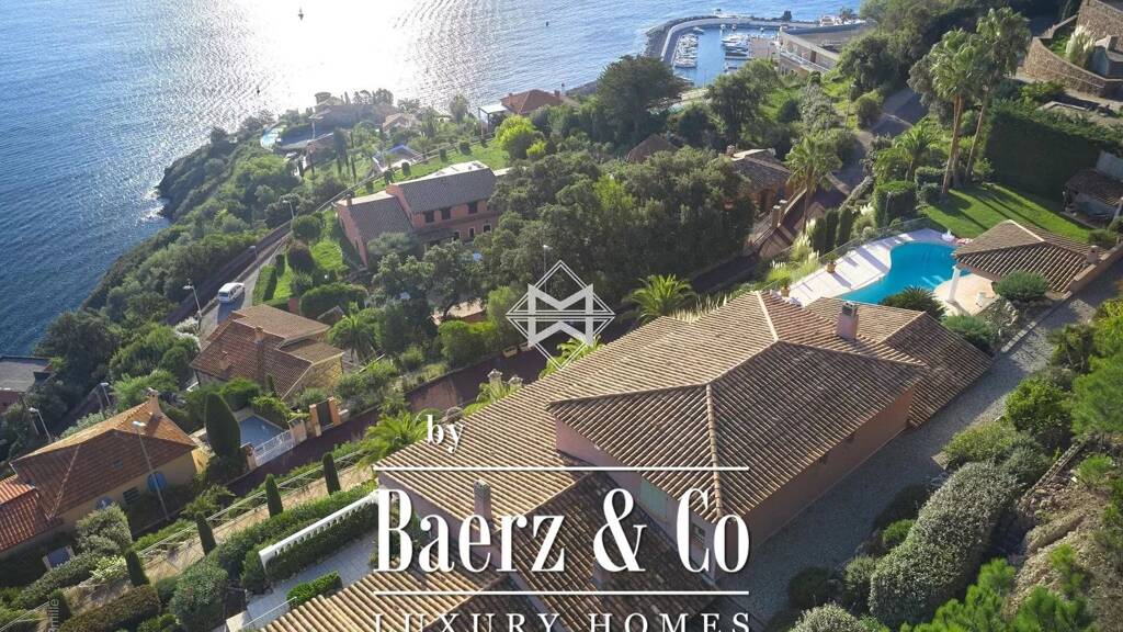 built between 1998 and 2000, the property is set on a splendid 4,280 square meter plot of land facing east on the edge of the pointe de l'aiguille natural park and offers a stunning view of the sea, the lérins islands and the french riviera with the french alps in the background. the villa develops generous volumes on two levels with a total living area of 360 square meters including 5 bedrooms and their bathrooms, a spacious living room extended by a gallery and an authentic provencal kitchen.