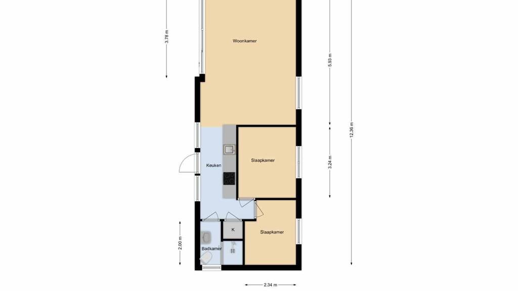 Anzahl der Schlafzimmer: 2, Anzahl der Badezimmer: 1, Anzahl Terrassen: 1