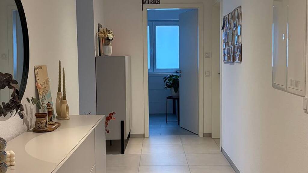 Diese moderne Erdgeschoss-Eigentumswohnung befindet sich in einem gepflegten 8-Familienhaus in verkehrsberuhigter Lage von Gailingen am Hochrhein und vereint zeitgemäßen Wohnkomfort mit hoher Lebensqualität. Das Gebäude wurde 2022 errichtet (KfW-55-Standard) und ist seit 2024 bezugsfertig. Dank 3-fach verglaster Fenster sowie einer effizienten Kombination aus Gas- und Luftwärmepumpe überzeugt die Immobilie durch Nachhaltigkeit und niedrige laufende Kosten. Die Wohnung bietet ca. 108 m² Wohnfläche mit durchdachtem Grundriss, zwei Bädern, einem zusätzlichen Gäste-WC mit Waschmaschinenanschluss sowie einem komfortablen Masterbad mit Badewanne und begehbarer Dusche. Hochwertiger Vinylboden in den Schlafräumen, großformatige Fliesen in den Wohnbereichen und stilvolle Deckenspots im Eingangsbereich, Bad und Küche sorgen für ein modernes, angenehmes Wohnambiente. Die exklusive Einbauküche mit Markengeräten von Miele, Bora und Siemens inklusive Vorratsschrank (Wert ca. 30.000 €) ist bereits im Kaufpreis enthalten. Ein besonderes Highlight ist der private Außenbereich mit ca. 19 m² Terrasse und ca. 39 m² Garten mit Sondernutzungsrecht, ergänzt durch einen separaten Abstellraum auf der Terrasse. Die Wohnung ist bequem per Lift erreichbar. Zur Einheit gehört außerdem ein großzügiger Kellerraum, der ausreichend Platz für Vorräte, Sportgeräte oder saisonale Gegenstände bietet. Ein Tiefgaragenstellplatz kann für 20.000 € miterworben werden. Das monatliche Hausgeld beträgt 350 € und beinhaltet einen rundum Hausmeister-Service, der für Komfort und Werterhalt sorgt – ideal für Paare, Familien sowie Senioren, die den Schritt vom Haus in eine barrierearme Wohnung planen. Die professionelle Betreuung der Immobilie erfolgt über die BTH Hausverwaltung, die mit einem ausgezeichneten, modernen Service inklusive digitaler Verwaltung per App überzeugt. Gailingen am Hochrhein bietet eine hervorragende Infrastruktur mit Einkaufsmöglichkeiten, Ärzten, Schulen, Kinderbetreuung und einem lebendigen Gemeindeleben. Als staatlich anerkannter Erholungsort mit Rheinnähe, schönen Spazier- und Radwegen sowie der Nähe zur Schweiz ist der Ort besonders attraktiv für alle Generationen.