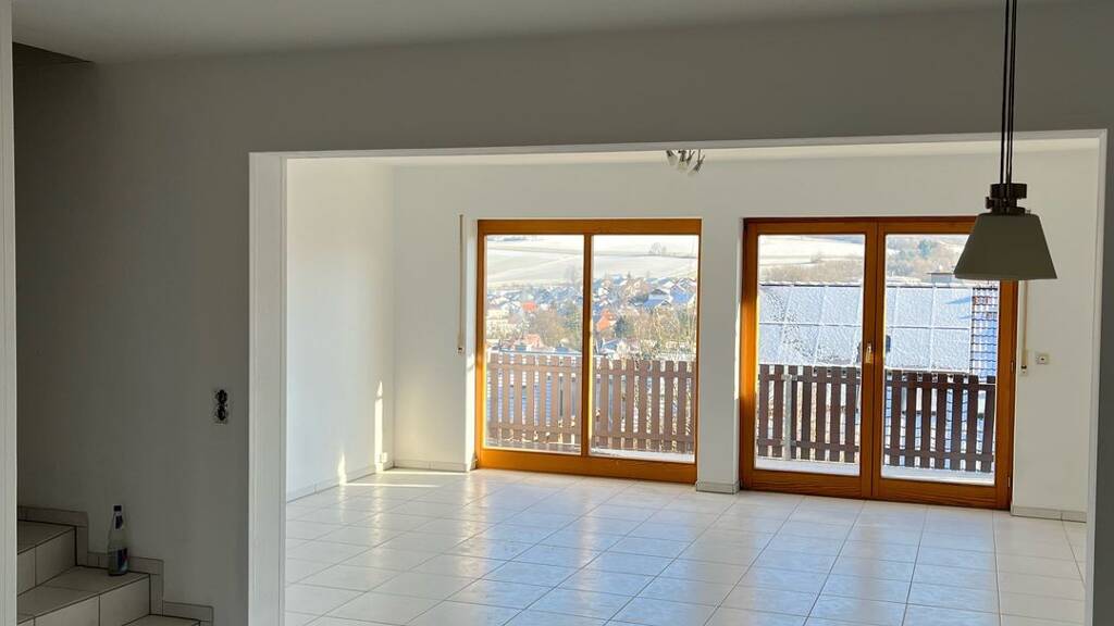 Das Herzstück bildet das Erdgeschoss mit einem hellen Wohn- und Essbereich und direktem Zugang zum neu renovierten, rund sechs Meter breiten Balkon mit beeindruckendem Blick über Schöllkrippen. Die funktionale Küche bietet Platz für gemeinsame Kochabende und kann bei Bedarf vom Mieter übernommen werden. Ein Gäste-WC sowie eine Fußbodenheizung im gesamten Erdgeschoss sorgen für zusätzlichen Komfort.