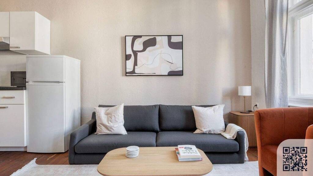 Durchdachtes Design mit maßgeschneiderten Oberflächen und moderner Einrichtung, und eine voll ausgestattete Küche, Sie werden das „Ich bin zu Hause“-Gefühl mit diesem Blueground Wohnung genießen. Egal, ob Sie in Ihrem hochentwickelt Wohnzimmer die neuesten und besten Unterhaltungssendungen über den Smart-TV oder den kabellosen Premium-Lautsprecher streamen oder sich auf der hochwertigen Matratze ausruhen – Sie werden sich in alles verlieben, was dieses Kreuzberg Wohnung zu bieten hat.