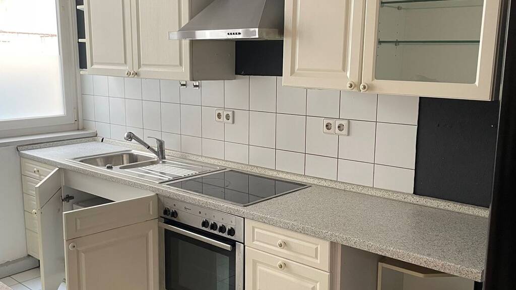 Die Wohnung verfügt über sehr helle Räume durch große Fenster in jedem Raum. Zudem gibt es eine optimale Raumaufteilung für Wohn-/Esszimmer, Schlafzimmer und Kinderzimmer bzw. Büro. Die Wohnung befindet sich in der Durlacher Straße in zentraler Lage, durch die Fenster Richtung Innenhof ist sie dennoch sehr ruhig. Von der Vormieterin können bei Bedarf und entgeltliche folgende Möbel übernommen werden: - Kleiderschrank mit Schiebetüren (2m breit 2,4m hoch) - Badezimmer Spiegelschrank - Badezimmer Waschbeckenunterschrank - Spülmaschine