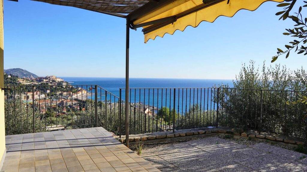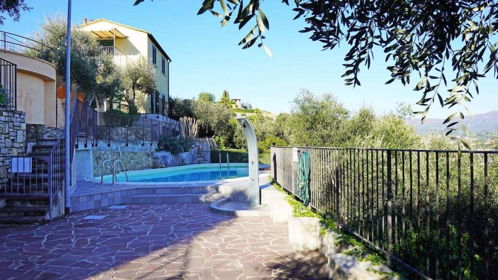 Villa mit privatem Garten, traumhaftem Meerblick und Gemeinschaftspool in Imperia zu verkaufen.