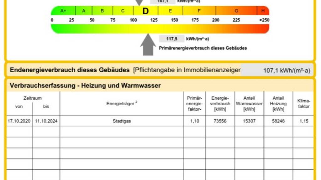 Das Objekt verfügt über einen energetischen Ausweis der Klasse D+ (Standard), was eine solide Energieeffizienz gewährleistet. Somit sind mittelfristig keine weiteren Maßnahmen erforderlich, was den Unterhalt unkompliziert und kosteneffizient macht.