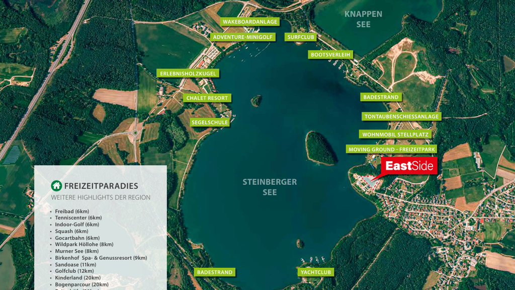 Der Steinberger See, einer der größten Seen der Oberpfalz, bietet zahlreiche Freizeitaktivitäten wie Wassersport, Radfahren oder Spaziergänge entlang der Uferpromenade. Restaurants, Cafés sowie verschiedene Freizeitangebote befinden sich in unmittelbarer Umgebung.