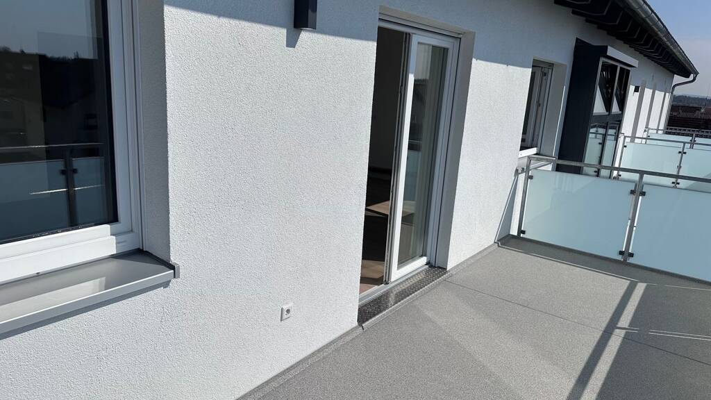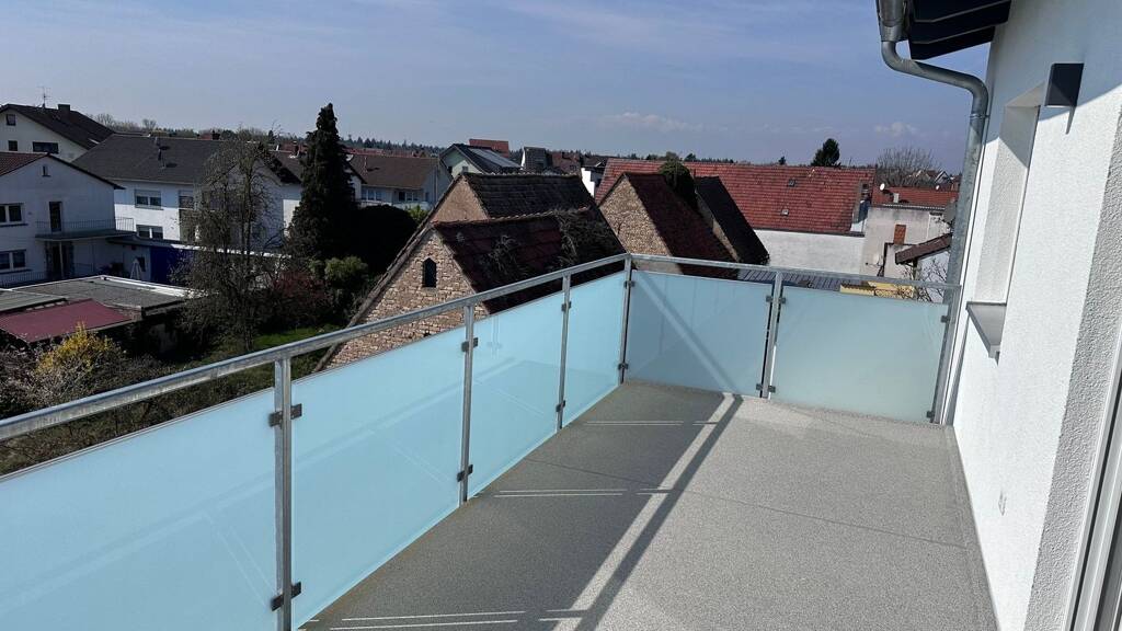 - Großzügige Balkon-Oase: Der weitläufige Süd-Balkon lädt zum Verweilen im Freien ein. Er besticht durch einen edlen Granitkomposit-Belag, der nicht nur optisch überzeugt, sondern auch extrem witterungsbeständig ist. Ein hochwertiger Echtglas Sichtschutz sorgt für eine private Atmosphäre, ohne das natürliche Licht einzuschränken.
