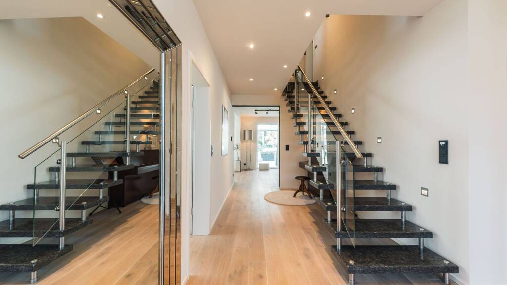 Diese stilvolle Stadtvilla wurde 2024/2025 umfassend um- und ausgebaut und präsentiert sich heute in absolut neuwertigem Zustand – einziehen und wohlfühlen. Ein durchgängiges Wohnkonzept vereint Design, Funktionalität, Wohnkomfort und Alltagserleichterung auf höchstem Niveau. Die Lage in Spielstraße und Sackgasse macht das Haus besonders attraktiv für Familien. Auf 212 m² Wohnfläche und einem 660 m² Grundstück überzeugt die Villa mit hochwertigen Materialien, maßgefertigten Einbauten mit indirekter Beleuchtung, Dim-to-Warm-Lichtkonzept, Kamin und einem stimmigen Ambiente. Der neu angelegte Garten bietet App- gesteuerte Bewässerung, Pool-Vorbereitung, eine überdachte, hochwertige Terrasse und liebevoll gestaltete Beete – ideal für entspannte Stunden und gesellige Abende. Im Zuge der Kompletterneuerung wurden Innen- und Außenbereiche einheitlich umgestaltet , u. a. Terrasse, Garten, Fassade, Garage, Hauswirtschaftsraum, Echtholzböden, Nolte-Designküche, vier exklusive Bäder, Dachgeschossausbau, hochwertige Schreinerarbeiten sowie teilweise Klimatisierung. Da die Immobilie ursprünglich für den Eigenbedarf geplant war, wurde konsequent auf Qualität, Langlebigkeit und Alltagstauglichkeit geachtet. Ausstattung • Energieausweis A+ GEG aus 2022 (gültig bis 2033) • Fußbodenheizung in allen Räumen außer Dachgeschoss • Wärmepumpe • Elektrische Rollläden • Gartenhaus inkl. überdachtem Sitzbereich aus 2022 • Terrassenüberdachung (beleuchtet) aus 2022 Komplett Um- und Ausbau in 2024 : • Exklusive Schreinerarbeiten & maßgefertigte Schranksysteme • Nolte-Designküche • Komplettsanierung aller 4 Bäder • Echtholzparkett & hochwertige Fliesen (inkl. Garage) • Video Klingelanlage mit App steuerbar • Grohe BLUE Wasseraufbereitung (Sprudel & still) • Grünbeck Wasserenthärtung • Gartenbewässerungsanlage per App steuerbar • Garten Pool Vorbereitung • Garten-WC • Mülltonnensystem • Terrasse • Gartenanlage • Fassade • Daikin Klima & Heizung (DG /Garage) • 2025 Dach & Regenrinnen Lage Das Haus befindet sich in Andernach, einer charmanten Stadt am Rhein, in einer der begehrtesten Wohnlagen – familienfreundlich und zugleich zentral. Schulen, Einkaufsmöglichkeiten, Wanderwege und Freizeitangebote sind nur wenige Minuten entfernt. Über die B9 erreichen Sie Koblenz, Bonn und Köln schnell und bequem. RAUMAUFTEILUNG: Erdgeschoss: • Großzügiger Eingang • Wohn-/Essbereich mit Kamin • Nolte-Küche (2024) mit austauschbarer Front • Arbeitszimmer (Homeoffice/Gäste) • Gäste-WC mit Dusche • Exklusive Garderobe mit integriertem Stauraum • Technikraum Hauswirtschaftsraum mit Zugang zu: • Garage • Terrasse • Garten-WC Obergeschoss: 1. Abgeschlossene Einheit Waschbecken • Zwei großzügige Zimmer (sehr gut geeignet für zwei Kinderzimmer) mit anliegendem Badezimmer mit bodentiefer Dusche und zwei • Zusätzliches Zimmer (z.B. Kind 3, Arbeiten-, Hobby-, oder Schlafzimmer) 2. Abgeschlossene Einheit: • Exklusive Ankleide, Wellnessbad mit Badewanne, Regendusche, Zugang zum ausgebauten Dachgeschoss. Dachgeschoss: • Mögliches Schlafzimmer oder Studio mit Klimaanlage, ca.40 m² Wohnfläche (unter Berücksichtigung der Schrägen) und zwei Fenster • 10 Meter Schränke mit dimmbarer indirekter Beleuchtung. • Zusätzlicher Abstellraum ca.10 m² • Zugang über Ankleide mit Treppe Hauswirtschaftsraum: • Mit Zugang zum Garten • Zugang zur Garage • Tageslicht • Zugang zum Garten-WC Garten und Außenbereich: • Neu gelegte Terrasse mit Keramikfliesen (überdacht, beleuchtet, teils sonnig und schattig, uneinsehbar mit Südausrichtung) • Neu angelegter pflegeleichter Garten mit Rollrasen & Pflanzbeeten • Gartenbewässerung via APP steuerbar (Wasser über Zisterne) • Zugang von der Straße über Garage oder Tor • Technische unterirdische Vorbereitung für den Außenpool • Zisterne für Bewässerung