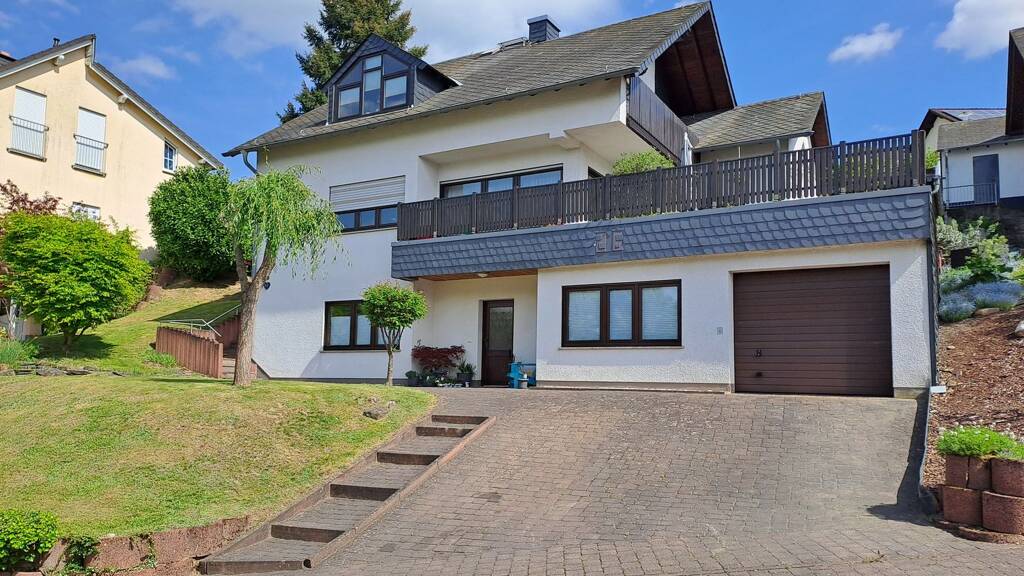 In ruhiger, naturnaher Höhenlage von Waldrach, mit einem traumhaften Blick in das Ruwertal und auf die umliegenden Weinberge, befindet sich dieses großzügige Wohnhaus bestehend aus zwei Wohneinheiten auf einem großzügigen Grundstück von ca. 867 m². Das Haus überzeugt durch seine ruhige Lage, die weitläufige Gartenanlage sowie die großzügige Raumaufteilung.