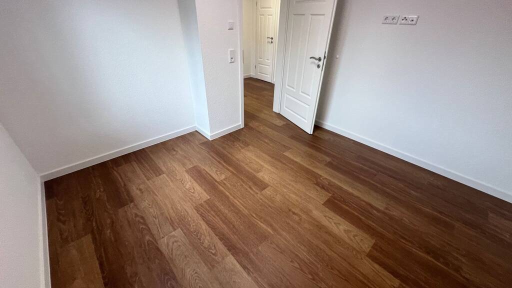 Weiße Türen und Fußleisten sorgen für ein modernes, freundliches Gesamtbild. Als Bodenbeläge wurden Fliesen sowie hochwertige PVC-Designerplanken gewählt.