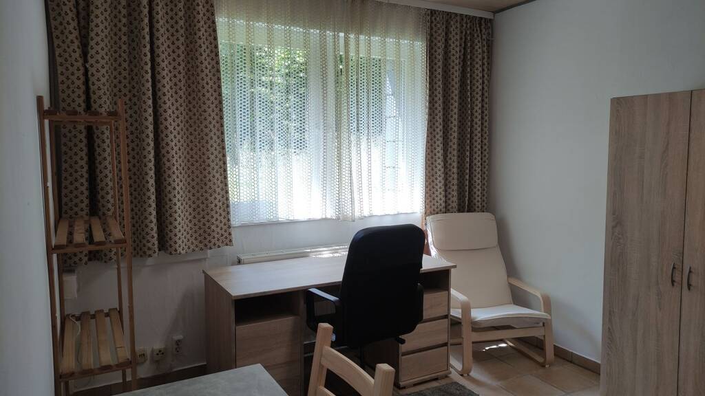 Das Apartment befindet sich in einem Haus mit insgesamt 8Apartments mit ähnlichem Aussehen. Das Haus liegt zentral in ruhiger Lage. Internetzugang ist kostenlos vorhanden. Waschmaschine und Trockner stehen gegen Gebühr zur Verfügung. Parkplatz ist hinter dem Haus vorhanden (kostenlos).Eine Terrasse kann zur Entspannung benutzt werden. Miete beträgt 300€ warm , Stromkosten nicht enthalten. Stromkosten werden alle 3Monate mit Wasch- und Trocknerkosten abgerechnet.
