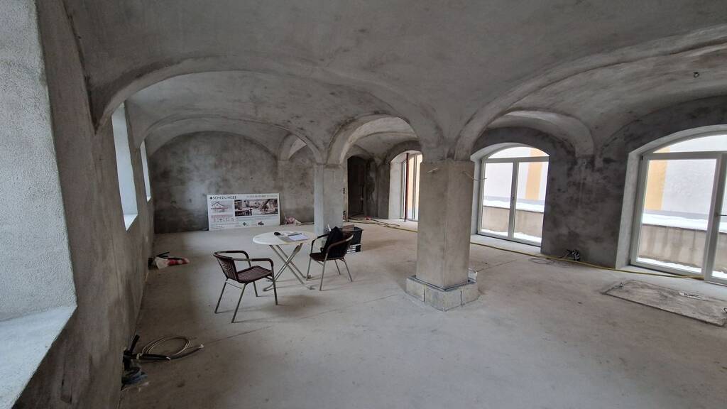 Am nördlichen Stadtrand von Trostberg wird in den ehemaligen Stallungen der historischen Brauerei eine besondere Gewerbefläche neu geschaffen. In diesem denkmalgeschützten Gebäude entsteht aktuell ein modernes Büro mit separatem Besprechungsraum und hochwertiger Teeküche – eine gelungene Verbindung aus Tradition und zeitgemäßer Architektur.