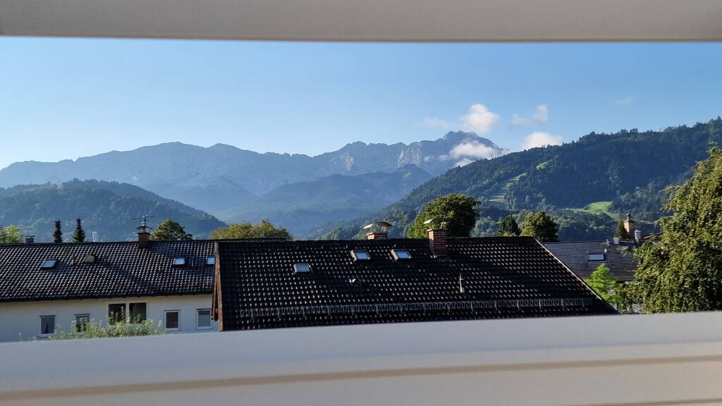 • Balkon: Traumhaft ausgerichtet mit Blick zur Alpspitze und zum parkähnlichem Grundstück