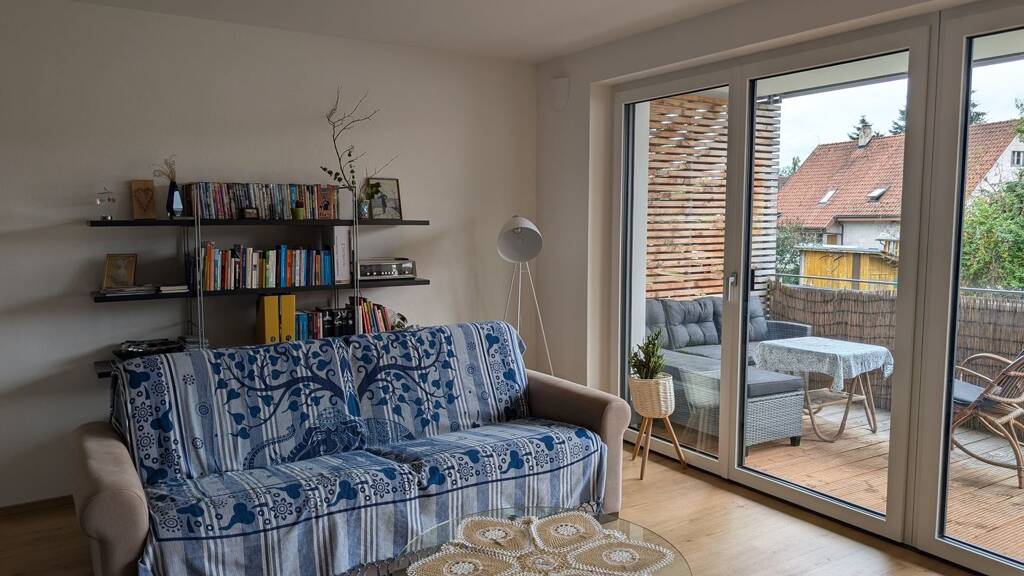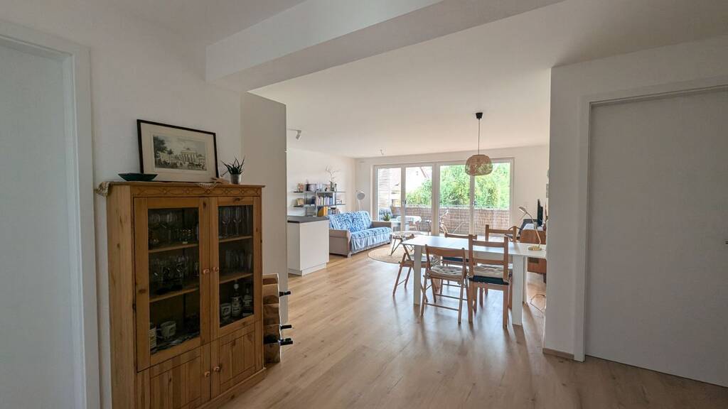 Durch bodentiefe Fensterfronten ist die Wohnung besonders hell und freundlich mit einem schönen Blick ins Grüne vom großen Südbalkon - trotz zentraler Lage am Rande der Altstadt. Sie befindet sich im 1. OG eines 2021 fertiggestellten Neubaus eines renommierten lokalen Bauträgers.