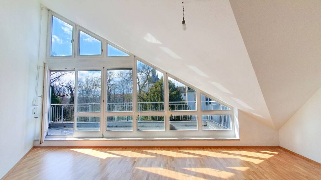 Der außergewöhnliche Grundriss ergibt eine helle und geräumige Wohnung, in der man wunderbar Wohnen mit Arbeiten verbinden kann. Die Wohnung verfügt über ein großes und helles Wohnzimmer mit extrahoher Decke, von dem man direkt auf den Balkon kommt, ein großzügiges Schlafzimmer, ein Arbeits-, Gäste- oder Zweitschlafzimmer, Flur, Küche mit moderner Einbauküche, Badezimmer sowie ein separates Gäste-WC.