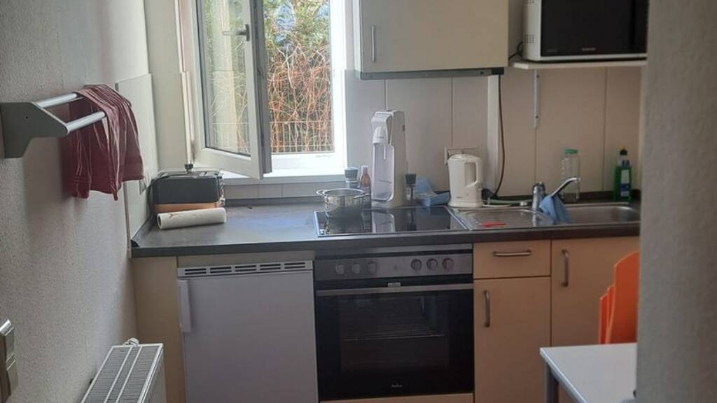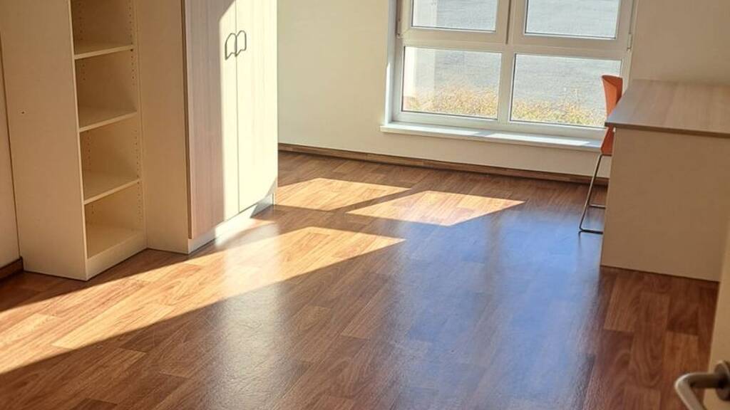 Die Wohnung gehört zur WBG Aufbau und liegt in einem Studenten Wohnheim. Eine AKTUELLE Studienbescheinigung ist permanent notwendig. Auch werden internationale Studenten mit einem Visum von unter 1 Jahr, vermutlich nicht angenommen. Das Zimmer selber ist ziemlich groß mit viel Platz für Schränke, einen Tisch oder eine Couch. Die Grundausstattung beinhaltet die oben gezeigte Küche, ein Bett, einen Kleiderschrank und einen ziemlich großen Schreibtisch. Durch das große Fenster ist das Zimmer den tagüber immer hell. Die Wohnung liegt im Erdgeschoss und die Straßenbahnhaltestelle ist zu Fuß innerhalb von 5min erreichbar. Für 10 Euro pro Monat kann man ebenso einen Stellplatz auf dem Hauseigenen Parkplatz mieten. Der Fahrradkeller ist kostenlos.