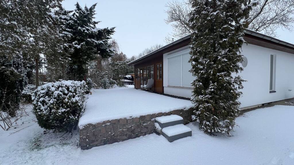 Im April wird das Haus um einen Anbau mit zwei zusätzlichen Zimmern und eigenem Bad erweitert (Einliegerwohnung) Eine große Terrassentür (3 m) ermöglicht direkten Zugang in den Garten.