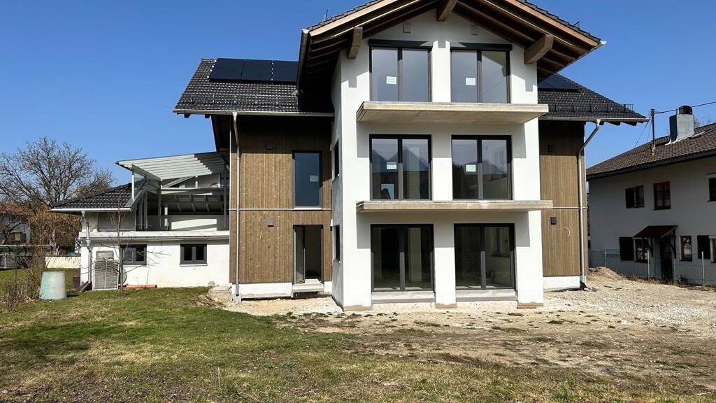 Die großzügig geschnittene Wohnung befindet sich im 1. OG eines aufwändig und nachhaltig kernsanierten Mehrfamilienhauses am südlichen Ortsrand in Bernau am Chiemsee. Sie verfügt über zwei Schlafzimmer, einen großen Wohnbereich mit Balkon zur Südseite, eine geräumige und gut geschnittene Wohnküche mit Zugang zur überdachten wind- und blickgeschützten Dachterrasse, ein Badezimmer mit Badewanne und Dusche sowie ein separates WC. Ein geräumiges Kellerabteil gehört ebenfalls zur Wohnung. Ausstattung: Im Zuge der Kernsanierung wurde in allen Bereichen großer Wert auf einen gehobenen Standard und Nachhaltigkeit gelegt. So verfügen alle Fenster über elektrische Rollläden, die Belüftung der Zimmer erfolgt über ein dezentrales Lüftungssystem mit Wärmerückgewinnung. Die Wärmedämmung der Außenfassade besteht aus nachhaltigen Holzwerkstoffen (Holzwolle und Holzfaserplatten). Die Fenster und Glastüren in Holz-Alu- Bauweise sind mit 3-fach Wärmeschutzverglasung ausgestattet. Eine Wärmepumpe und Fußbodenheizung in der gesamten Wohnung sorgen für eine angenehme Wärme. Der Strom dafür wird, soweit möglich, über die PV-Anlage und einen Batteriespeicher selbst erzeugt. Beim Innenausbau wurde Wert auf einen erhöhten Schallschutz gelegt. Die Wohnung eignet sich somit auch perfekt um im Home-Office zu arbeiten. An dem der Wohnung zugeordneten Stellplatz kann bei Bedarf eine Wallbox installiert werden, hierfür ist bereits alles notwendige vorgesehen. Abstellmöglichkeiten für Fahrräder sind ebenfalls vorgesehen. Lage: Das Haus befindet sich am südlichen Ortsrand in Bernau am Chiemsee am Ende einer Sackgasse. Dadurch ist sehr wenig Verkehr vor dem Haus. Bernau ist über die Autobahn A8 und sehr gut Richtung München und Salzburg angebunden. Ebenso gibt es eine direkte Zugverbindung nach München und Salzburg und die Haltestelle Bernau ist Teil des Münchner Verkehrs- und Tarifverbunds (MVV). In Bernau gibt es sämtliche Geschäfte des täglichen Bedarfs sowie ein Outletcenter für Sportartikel, Kleidung und mehr. Der Chiemseepark Felden und das dort gelegene Strandbad sind mit dem Fahrrad oder mit dem Auto in wenigen Minuten zu erreichen. Die Berge liegen ebenfalls direkt vor der Haustür und bieten viele Möglichkeiten. So kann beispielsweise eine Wanderung auf die berühmte Kampenwand direkt an der Wohnung beginnen (ca. 3 Stunden einfach). Zusatzinformation: im EG des Hauses befindet sich eine identisch geschnittene Wohnung. Diese verfügt über drei Terrassenbereiche auf der Südseite (vor den beiden Schlafzimmern und vor dem Wohnbereich) und einen ruhigen Gartenbereich zur privaten Nutzung (ebenfalls auf der Südseite). Der Zugang zur Wohnung im EG ist stufenlos.