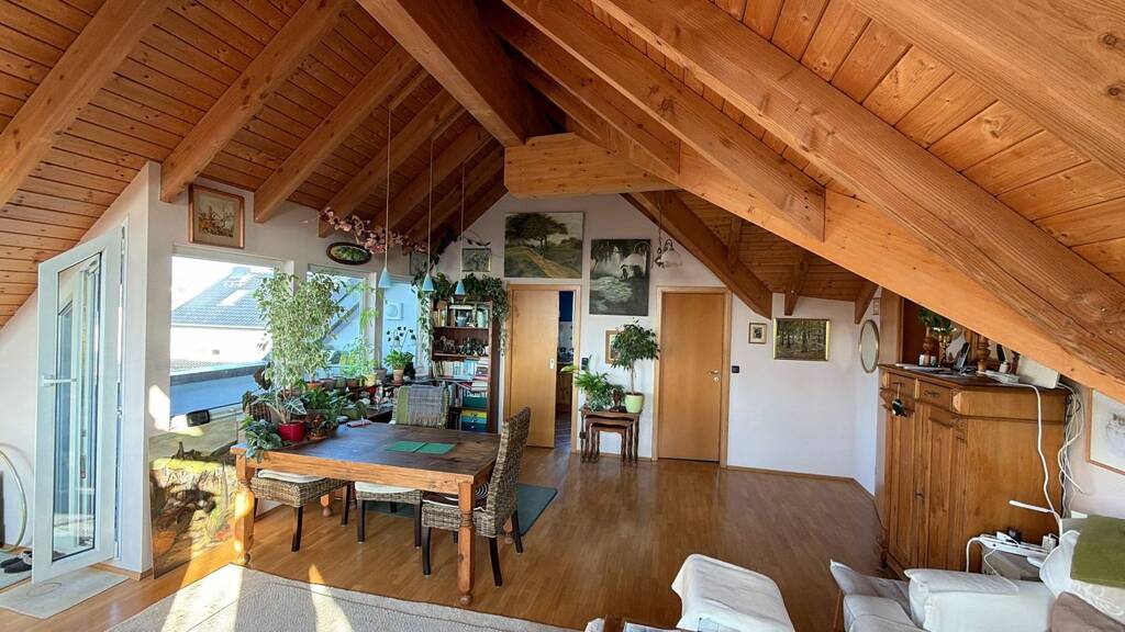 Die Wohnung ist konzipiert für anspruchsvolle Paare oder eine kleine Familie. Sie ist durchweg qualitativ hochwertig gebaut. In dem Massivhaus (Baujahr 2000) sind moderne Energiesparmöglichkeiten berücksichtigt. Das großzügige Wohnzimmer bietet einen einmaligen Weitblick über Gießen und Umgebung. Es gibt einen Kaminofen mit sichtbarem Feuer. Alle Zimmer und der Flur sind mit Eichenholzparkett ausgelegt. Das Sichtholz des isolierten Daches ist im Landhausstil ausgebaut. Beide Badezimmer sind mit hochwertiger Sanitärkeramik in Manhattan-grau ausgestattet. Das eine Bad verfügt über ein Bidet, das andere über ein Urinal. Alle Fenster haben Rollos. Im Keller ist eine Steckdose. Im Haus sind zwei weitere 4-Zimmer-Wohnungen und eine 2-Zimmer-Wohnung im Souterrain. Im Keller befindet sich eine ca. 3 m2 große Waschküche mit Platz für 4 Waschmaschinen und Trockner sowie ein 6 m2 großer Raum zum Wäschetrocknen. Der Fußweg zur Stadtbushaltestelle der Linie 24 beträgt 5 Minuten. Mit dem Auto ist man in gleicher Zeit bereits auf dem Gießener Ring. Einkaufsmöglichkeiten bestehen im Ort und können problemlos mit dem Fahrrad erreicht werden. 10 min zu Fuß befindet sich der Kindergarten. Ein Kinderspielplatz ist um die Ecke. Es gibt eine Grundschule im Ort. Da das Dachgeschoss mit sehr viel Holz ausgestattet ist, werden Nichtraucher bevorzugt.