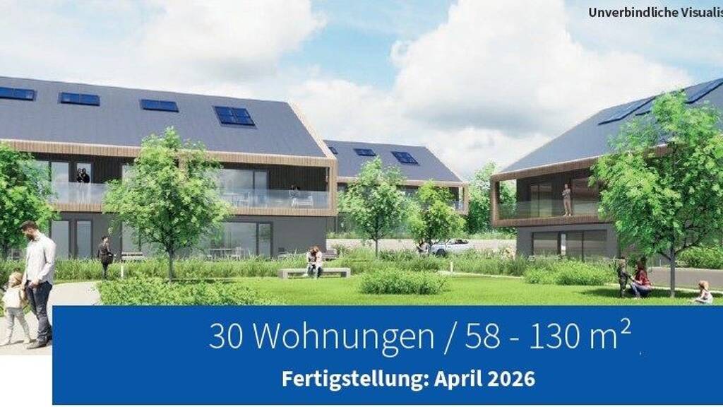 Die helle Wohnung ist mit ihrem großen Balkon nach Westen ausgerichtet, bietet einen Blick ins Grüne, und ist voraussichtlich ab dem 01.05.2026 bezugsfertig.